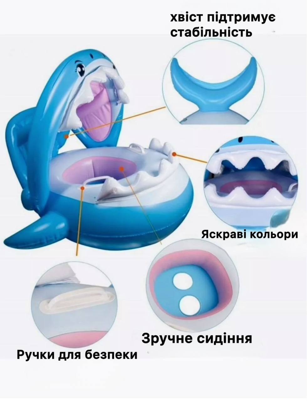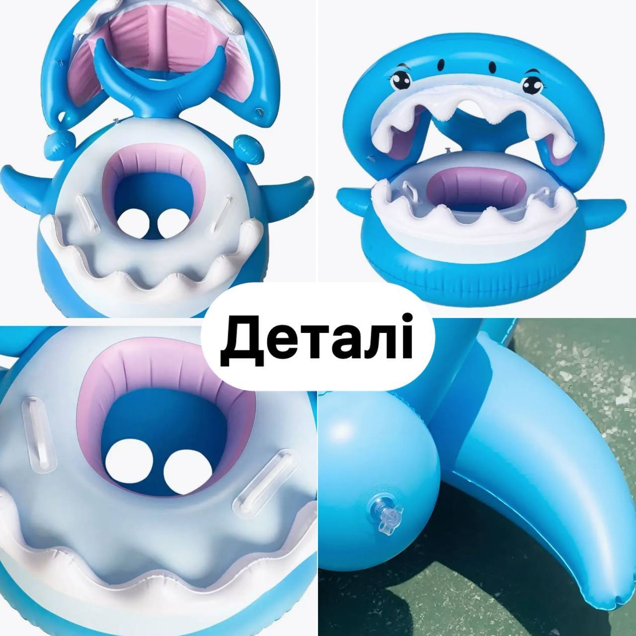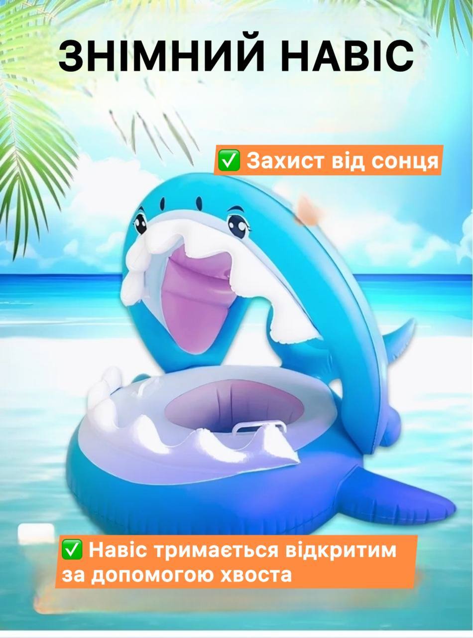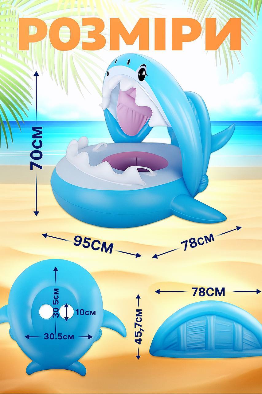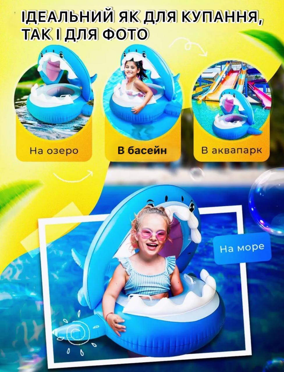 Надувний круг для плавання у вигляді акули із захистом від сонця