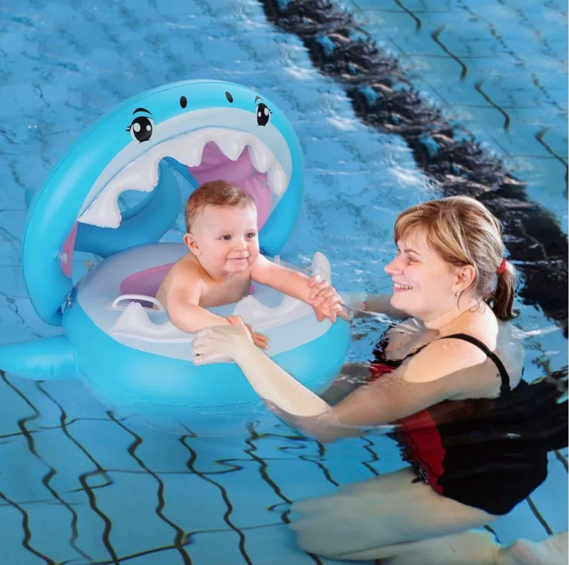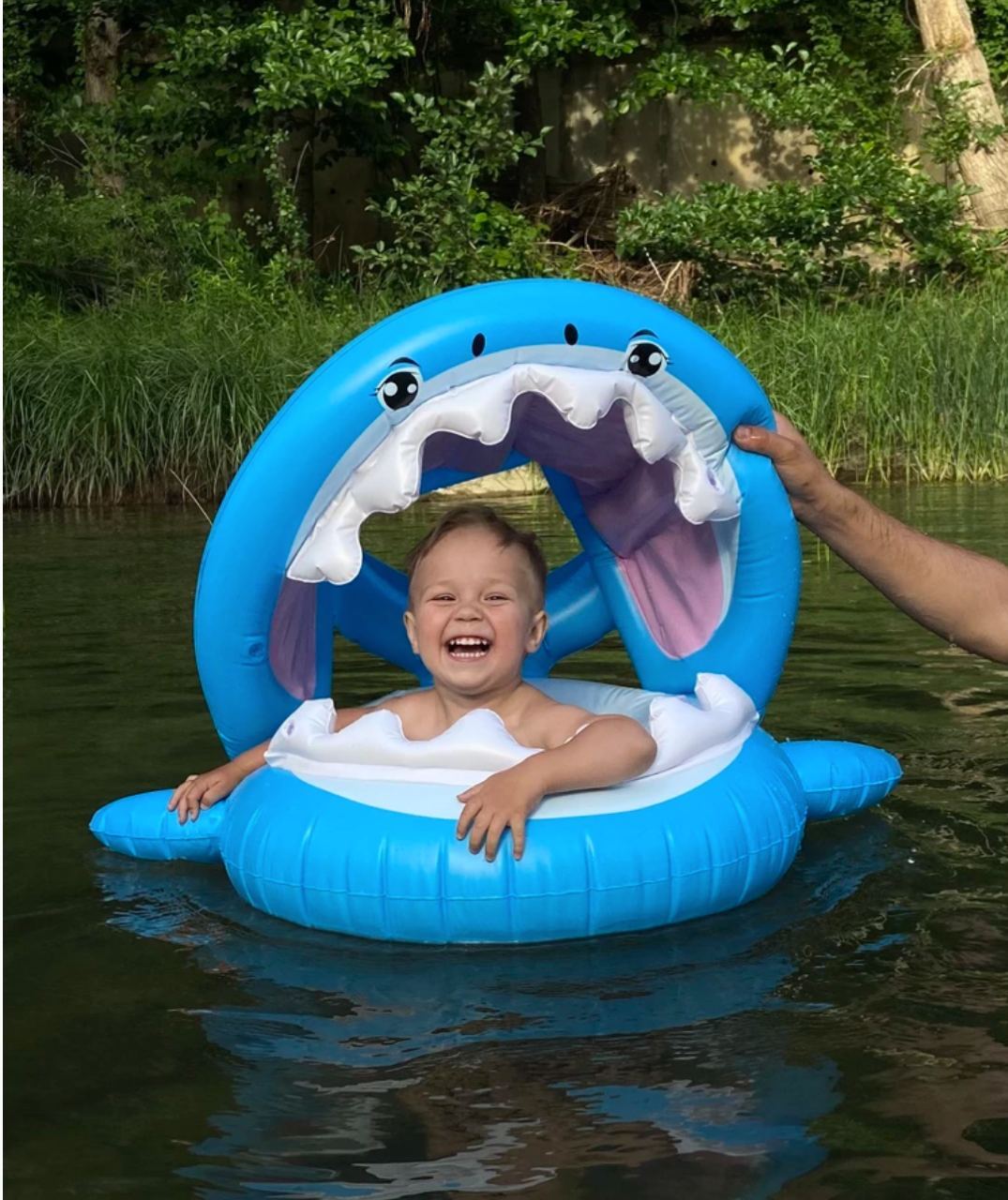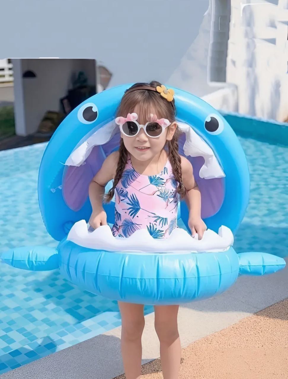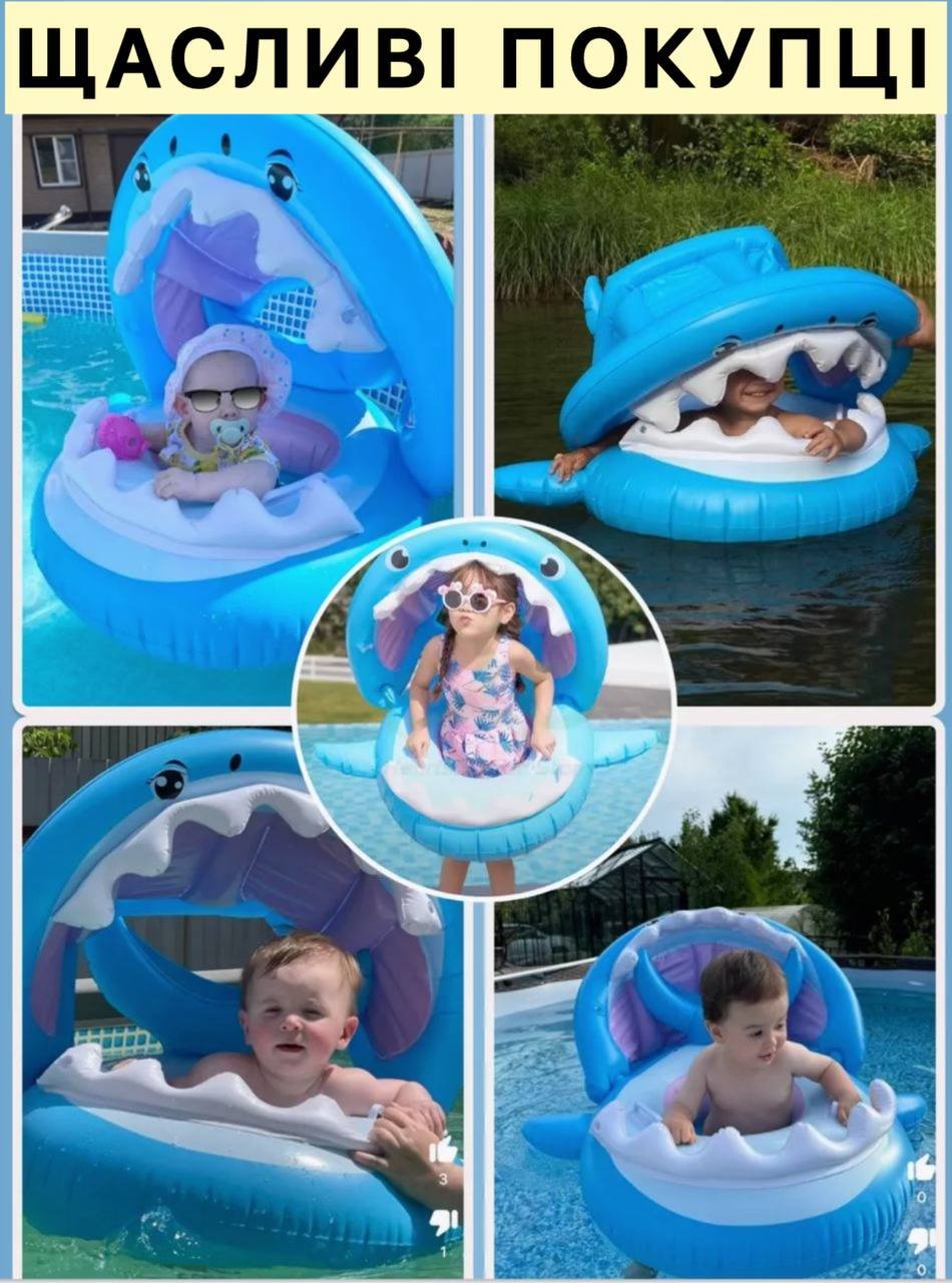 Надувний круг для плавання у вигляді акули із захистом від сонця