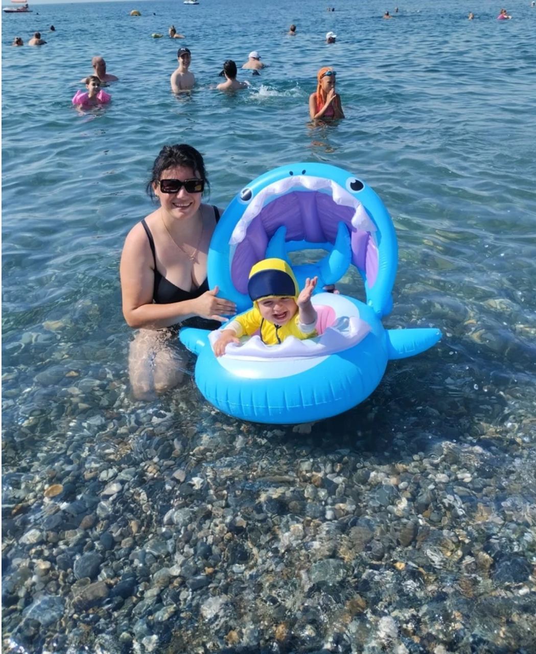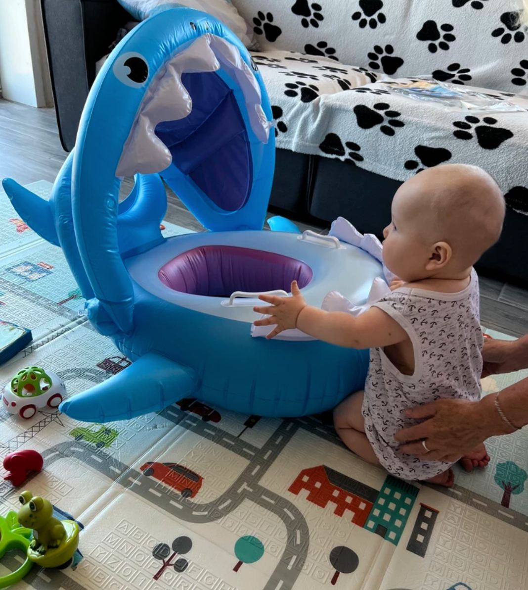 Крутий, дуже красивий, а головне зручний! 🥰 Синові 11 місяців садили навпаки обличчям до хвостика, дитині було комфортно, діставав ручками воду, + ми дуже не любимо головні убори і це коло з козирком-порятунок, загалом повне захоплення! Дочка 4 роки купалася вже, діти щасливі, плаваємо всі поряд, ні про що не турбуючись!