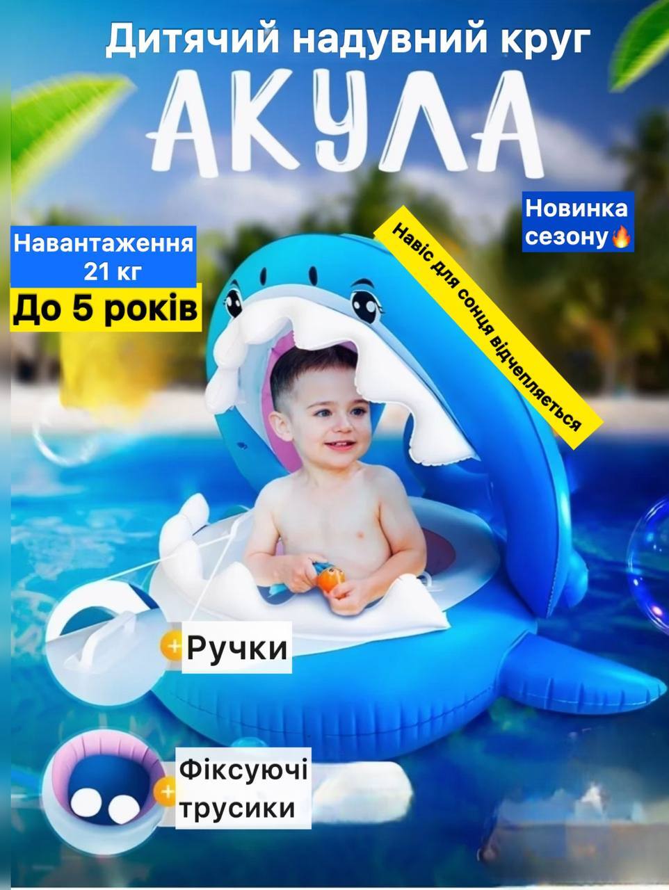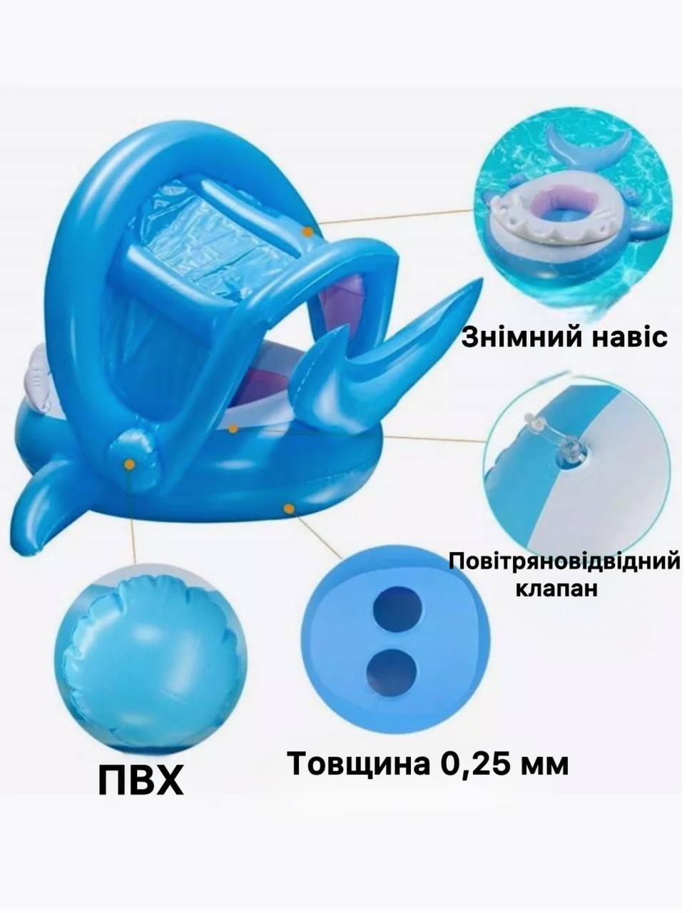 Надувний круг для плавання у вигляді акули із захистом від сонця